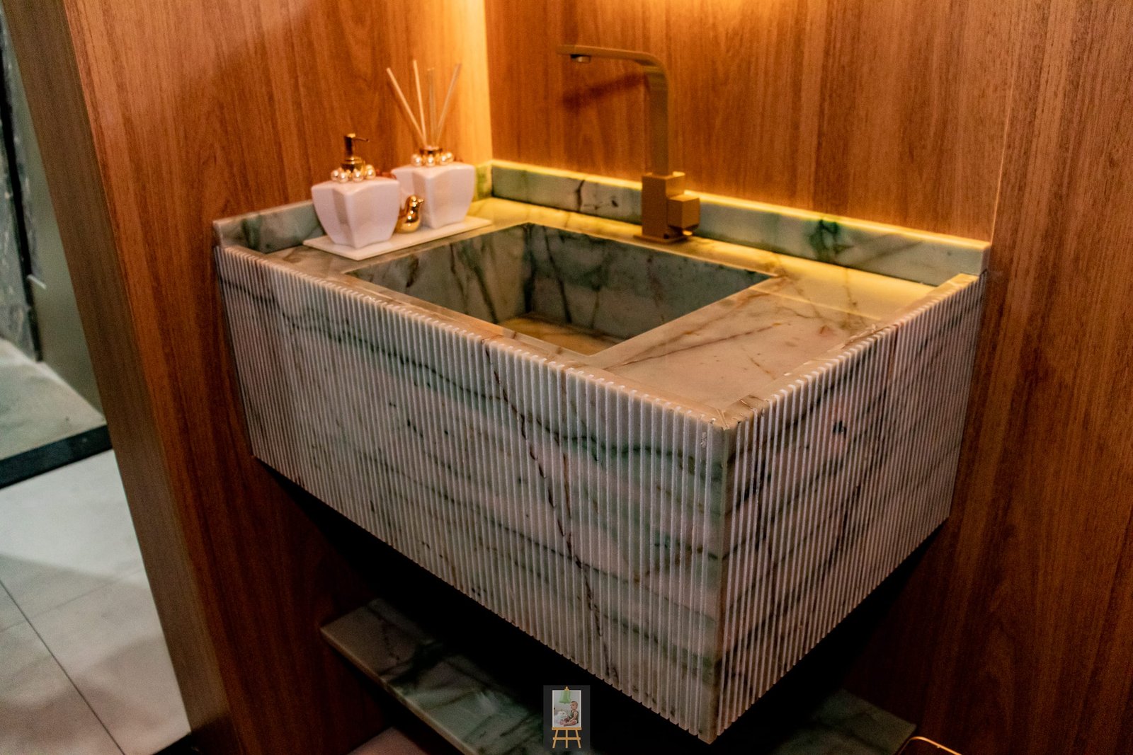 Oferecemos uma ampla variedade de pedras nacionais e importadas, incluindo mármore italiano, branco Paraná, Nero Marquina, entre outros materiais nobres e sofisticados. Em nosso escritório temos uma galeria de pedras, onde você pode visualizar todos os materiais pessoalmente.